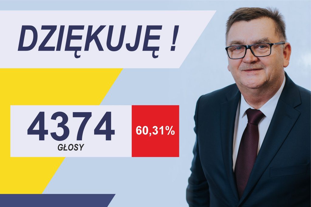 Dziękuję wszystkim, którzy wypełnili swój obywatelski obowiązek i wzięli udział w wyborach. Gratuluję wyniku mojej Kontrkandydatce pani Ewie Suwała, która uzyskała 2878 głosów (tj. 39,69 %).