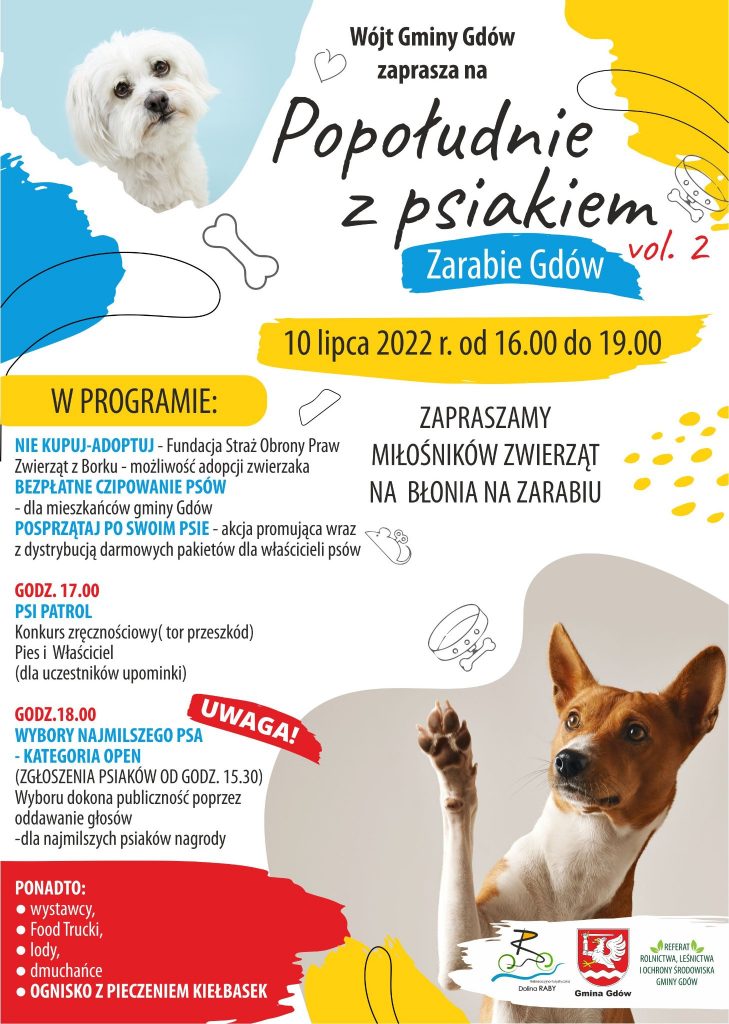 Wspólnie z moim czworonożnym przyjacielem serdecznie zapraszamy wszystkich miłośników zwierząt na „Popołudnie z psiakiem”, które odbędzie się już w najbliższą niedzielę na Zarabie Gdów – Strefa Rekreacji.