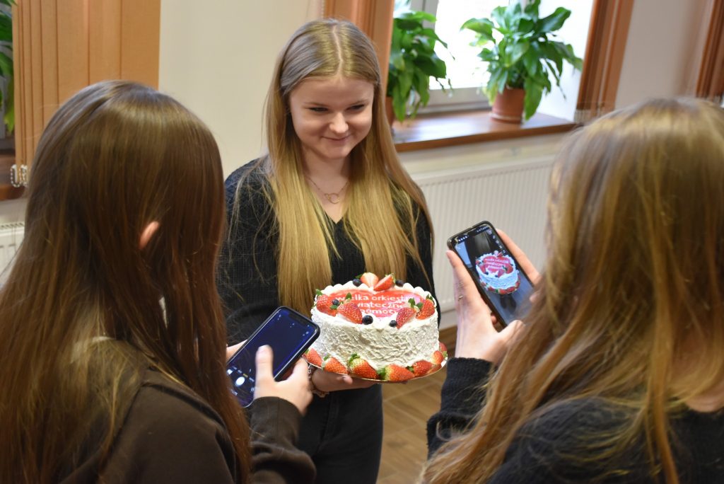 Osobom najbardziej zaangażowanym, podziękowaliśmy w specjalny sposób. Orkiestrowe torty trafiły do uczniów Szkoły Podstawowej w Gdowie oraz wolontariuszy z Centrum Kultury Gminy Łapanów. Wspólnie z szefową gdowskiego sztabu przekazaliśmy słodkości naszej młodzieży.